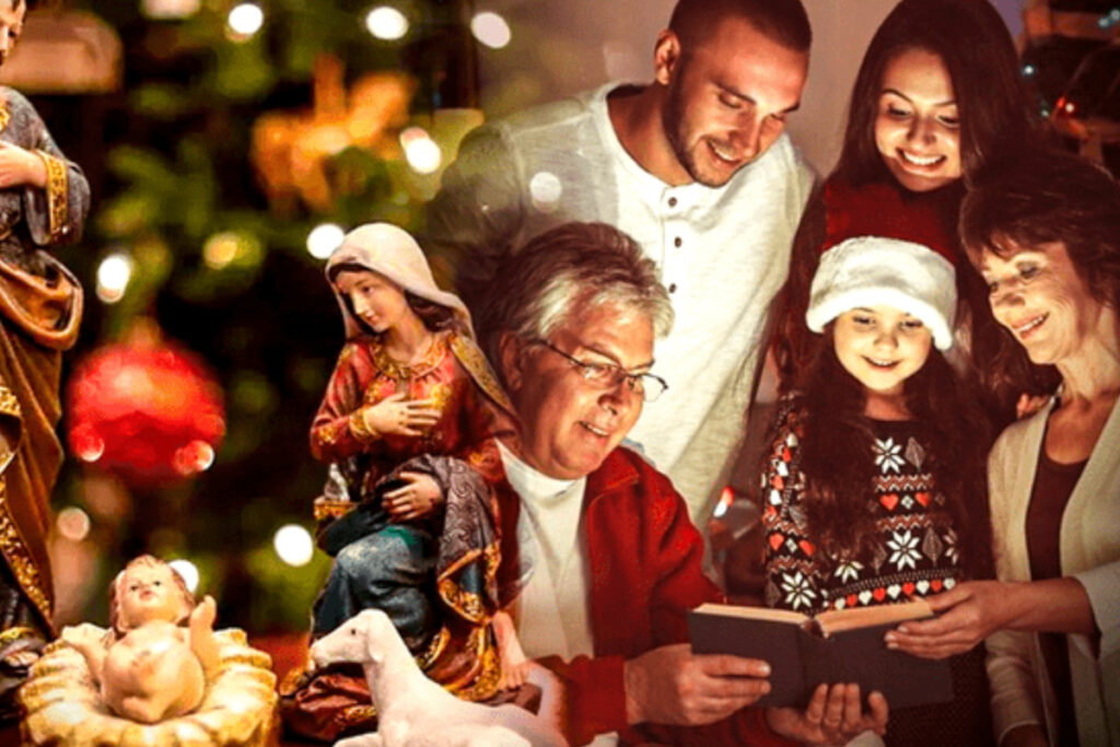 La lectura de las Peticiones o la Oración al Niño Jesús es perfecta para ellos. Si son muy pequeños para leer, pídeles que sean los encargados de tocar las maracas o panderetas solo durante los villancicos.